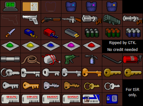 Resident Evil Gaiden item sprites ripped by GTK. These images are for personal viewing pleasure, archival and/or investigations ONLY.